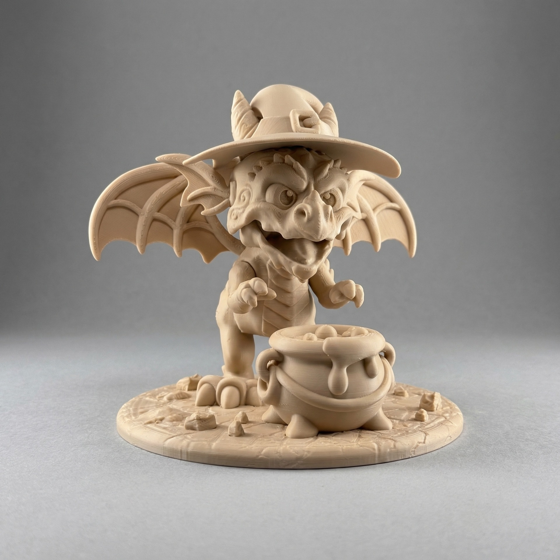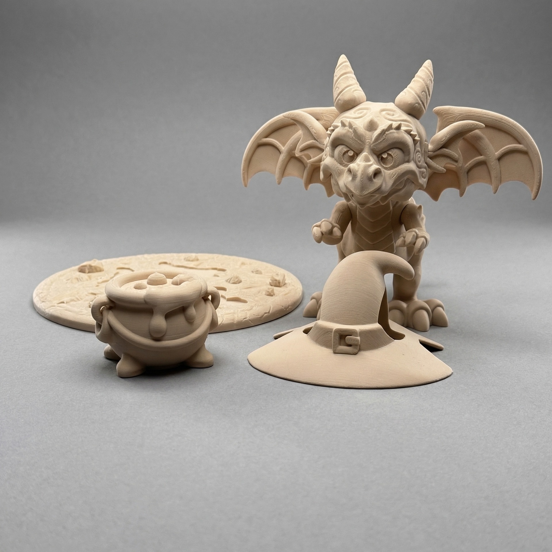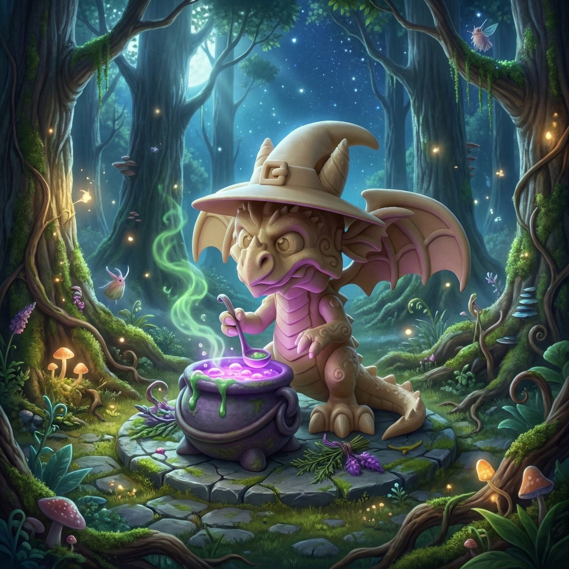 Ve světě draků existují i čarodějnice, jedna taková, připravující svůj lektvar, čeká na statečného malíře, co jí dodá barvy. Mává křídly, otevírá tlamu, máchá drápy a umí i sedět. Součástí je i podstavec, kotlík a klobouk, aby dioráma bylo dokonalé.