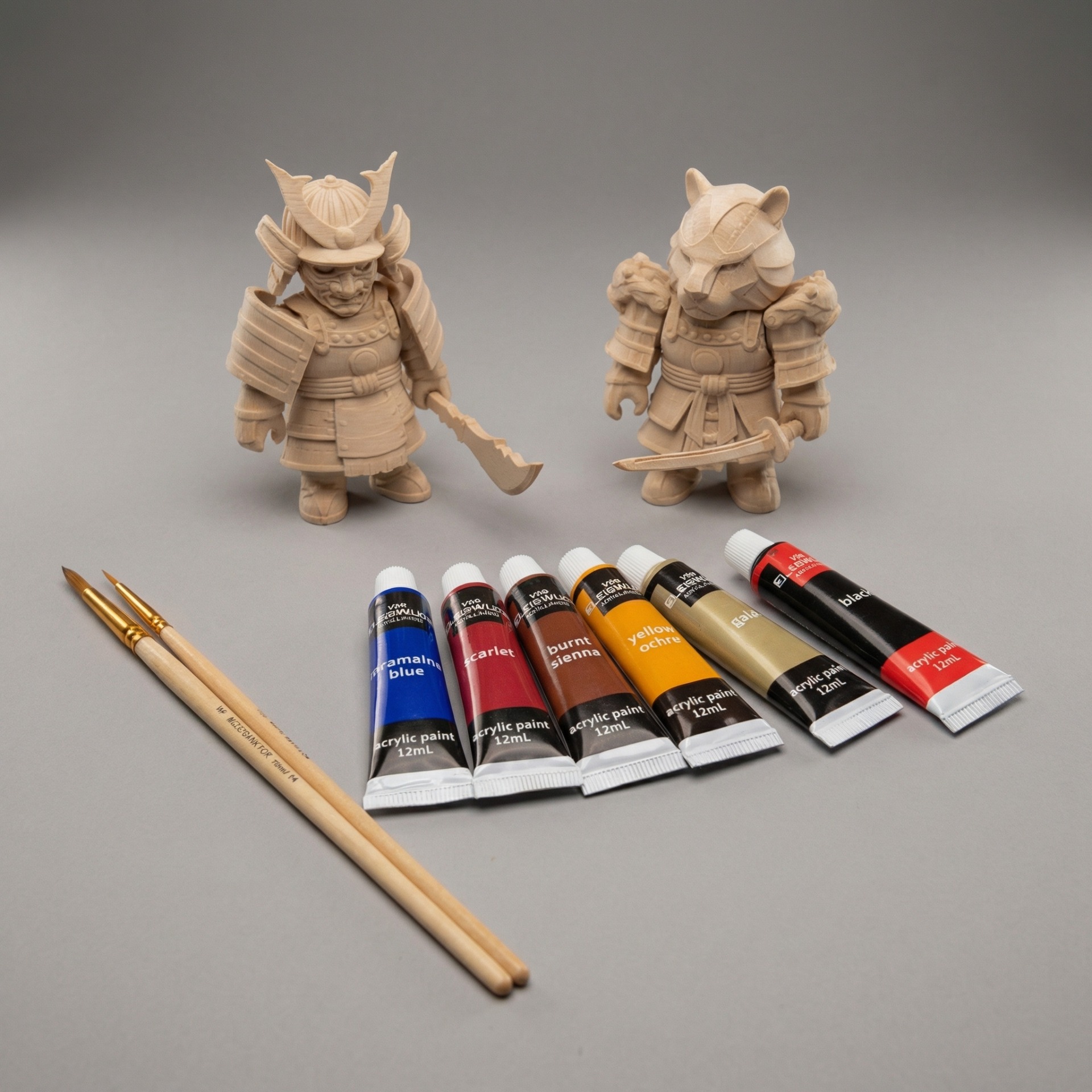 Balení obsahuje: 2x kompletní postavička včetně příslušenství , sadu akrylových barev 6x12ml, sadu štětců 2ks