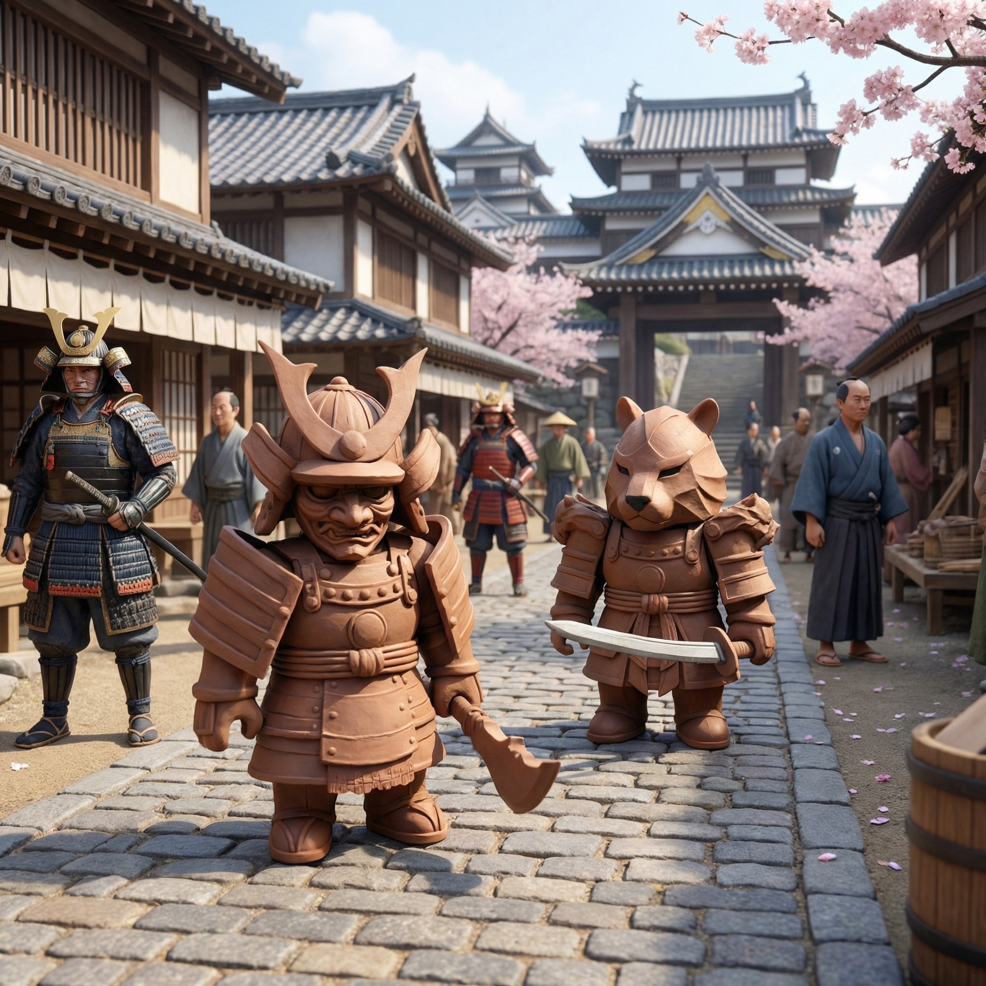 Neporazitelní Samurajové v jejich bájné zbroji, samurajským mečem a Yari.