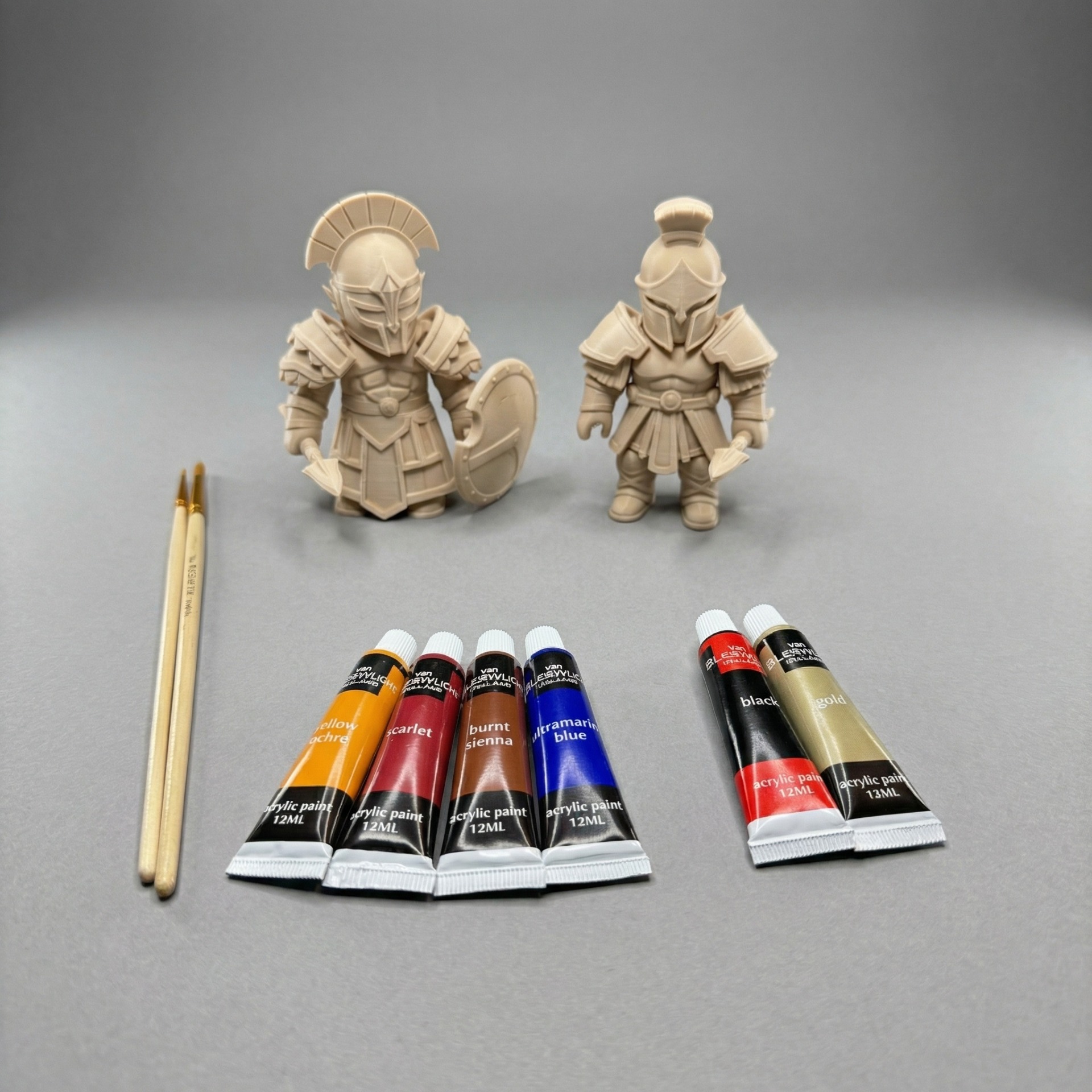 Balení obsahuje: 2x kompletní postavička včetně příslušenství , sadu akrylových barev 6x12ml, sadu štětců 2ks