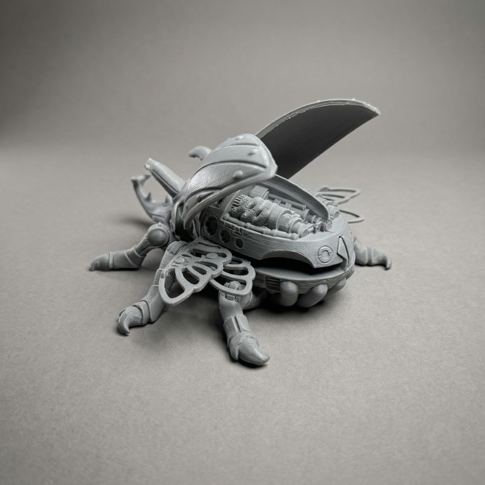 Komplet pohyblivé nohy, hlava, vytahovatelná křídla a odklopné krovky. Výjimečné detaily jako třeba motor pod krovkami bude na barvení bomba .